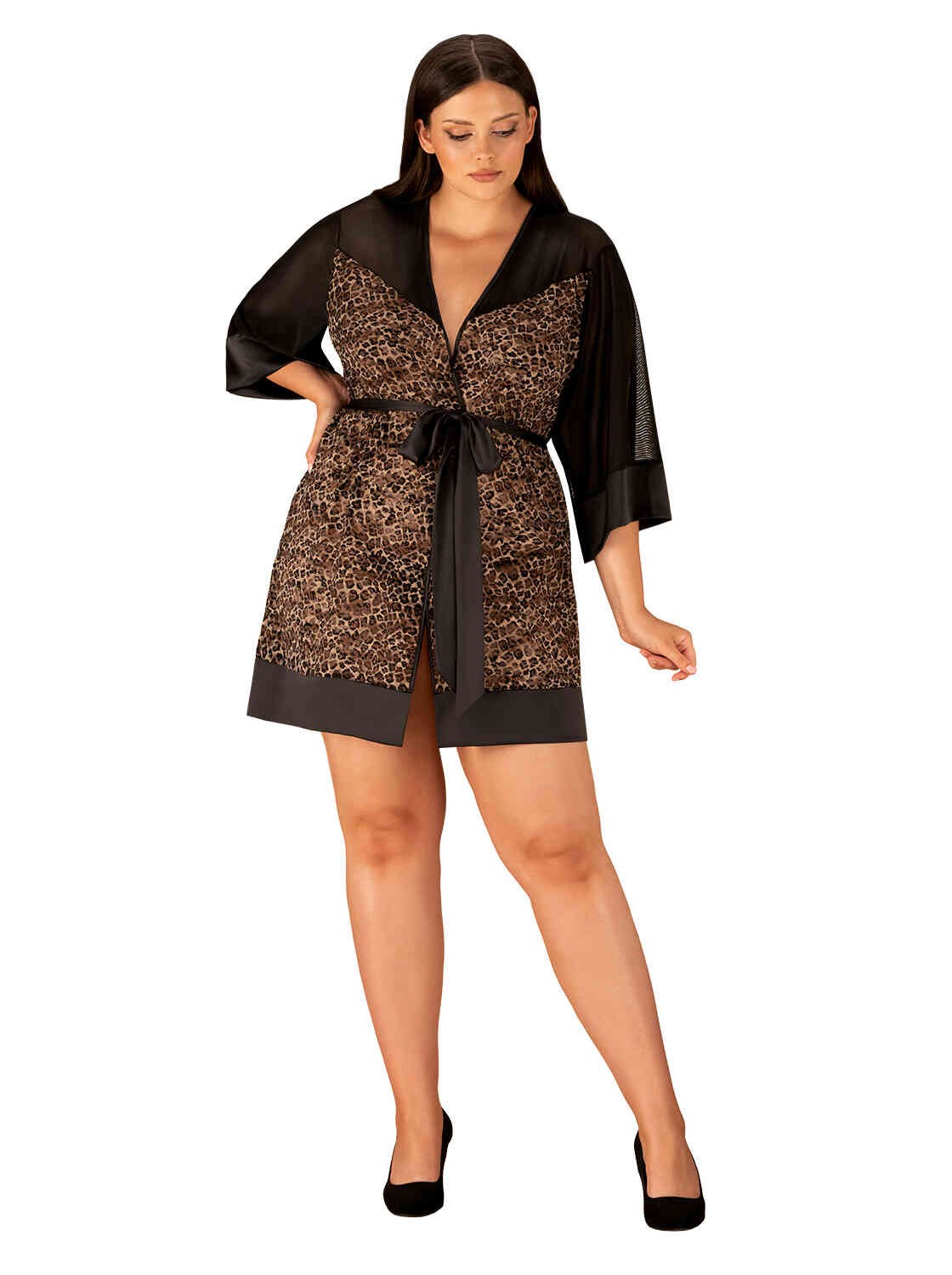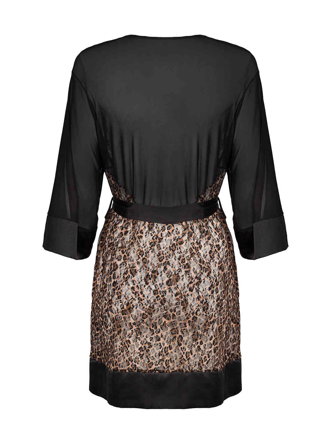Peignoir Allunes Quel sera le complément parfait à votre ensemble de lingerie préféré ? Bien sûr, un peignoir féminin et celui-ci de la collection Allunes impressionne non seulement par sa coupe sensuelle, mais séduit également par son design hors du commun ! Vous cherchez quelque chose de spécial qui vous aidera à vous sentir plus sexy et plus confiant ? Ce bijou est fait pour vous ! Tous les détails importants : – peignoir Allunes sexy en noir profond – des motifs d’animaux accrocheurs – ils tentent et ravissent ! – matériau translucide sur les manches et le dos – ajoute de l’élégance – finition satinée – un peu de délicatesse – ruban à la taille – coupe parfaite – matière agréable pour le corps (90% polyamide, 10% élasthanne)