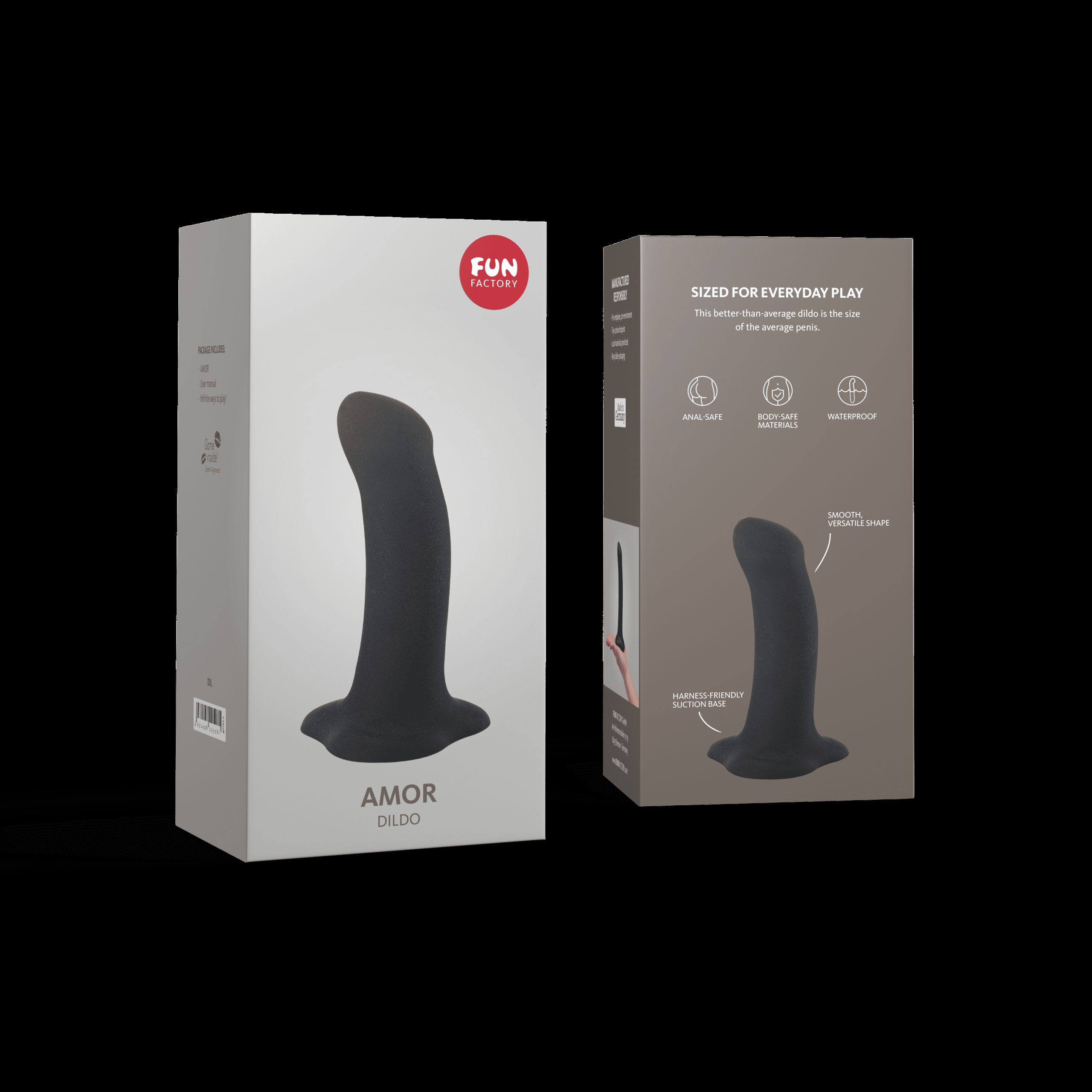 Un gode à la bonne tailleDe retour et en édition limitée : AMOR en arc-en-ciel pour la Pride 2023Taille et forme idéales pour l’équitationL’extrémité délicatement incurvée stimule le point G ou la prostate.Compatible avec les harnais, avec une base super fine pour un contact encore plus étroitLa base à succion adhère aux surfaces lisses et plates TypeSmall DildoDimensions14,6 cm and Ø 2,3-3,7 cmWeight181 gMaterials100% medical grade silicone, non-porous and hypoallergenic IDÉAL POUR ÊTRE ATTACHÉVous avez un partenaire qui souhaite une circonférence satisfaisante sans beaucoup de longueur ? Ce gode de taille moyenne est adapté pour vous deux.MANIABLE, FLEXIBLE, POLYVALENTVous n’avez pas besoin d’un harnais pour faire frissonner votre partenaire de plaisir.COLLEZ LELa base de l’AMOR est dotée d’une capacité de fixation surprenante !UN C?UR POUR LES GODESTous les dildos de FUN FACTORY sont hypoallergéniques et fabriqués exclusivement à partir de matériaux respectueux du corps. Le silicone et les couleurs sont traités avec le plus grand soin dans notre manufacture à Brême. Nos dildos sont coulés à la main et finis avec un bouton au pied. Le résultat est un jouet qui peut vous accompagner et vous ravir toute votre vie. Nos dildos, comme tous les jouets FUN FACTORY, sont sans odeur, faciles à entretenir et ont une surface veloutée. En bref : Avec AMOR, vous vous assurez un véritable trésor.PETIT GODE POUR DÉBUTANTS ET PROSQue ce soit en Rose bonbon ou en Noir, notre gode AMOR marque des points auprès des débutants en matière de sextoys comme auprès des plus expérimentés. Les débutants apprécient sa taille (14,6 centimètres) et les experts sa séduisante polyvalence.COMMENT UTILISER CORRECTEMENT UN GODE ?Si vous avez envie d’utiliser un gode, il n’y a pas de bonne ou de mauvaise manière. Tous les godes de FUN FACTORY sont performants pour la stimulation vaginale et sont également sûrs pour le jeu anal. Ils tiennent bien en main, se fixent aux surfaces lisses et peuvent facilement être associés à un harnais. QU’EST-CE QUI EST SPÉCIAL À PROPOS D’AMOR ?Vous aimez les changements de position torrides et le plaisir excitant de la sangle ? Grâce à la base extrêmement plate d’AMOR, vous pouvez maintenant vous rapprocher plus que jamais. De plus, son extrémité incurvée et légèrement élargie vise précisément votre point G ou votre prostate. Souple et flexible, AMOR est un excellent partenaire de jeu.QUELS SONT LES AVANTAGES D’UN PETIT GODE ?Bonne question ! Outre le fait que de nombreuses personnes préfèrent jouer avec des petits sextoys plutôt qu’avec des godes XL, AMOR est idéal pour le frottement ou le chevauchement. Que votre partenaire le porte dans un harnais ou que vous jouiez en solo en le fixant sur une surface plane, vous pouvez chevaucher AMOR et vous laisser complètement aller. AMOR atteint exactement la profondeur que vous désirez – ni plus, ni moins.