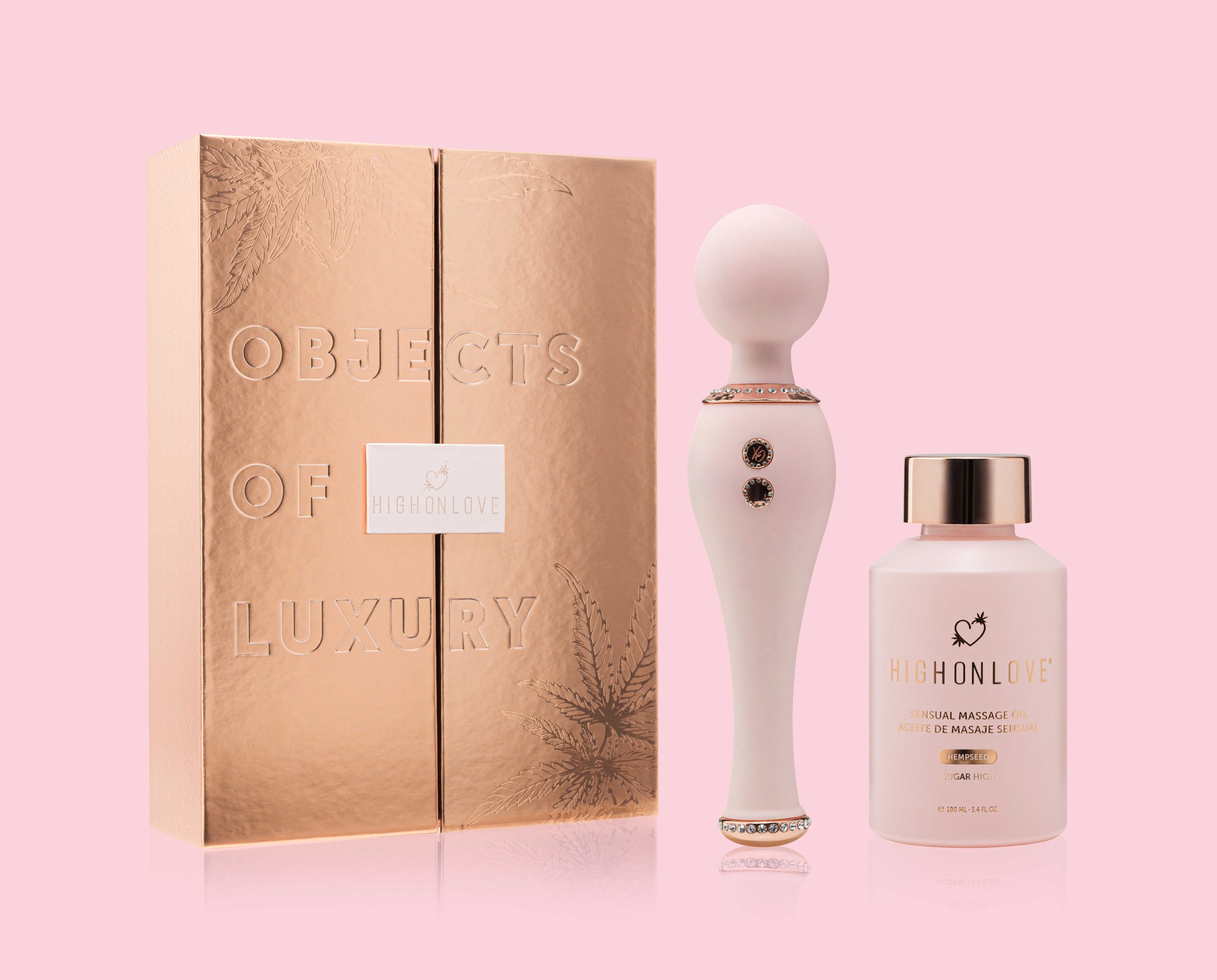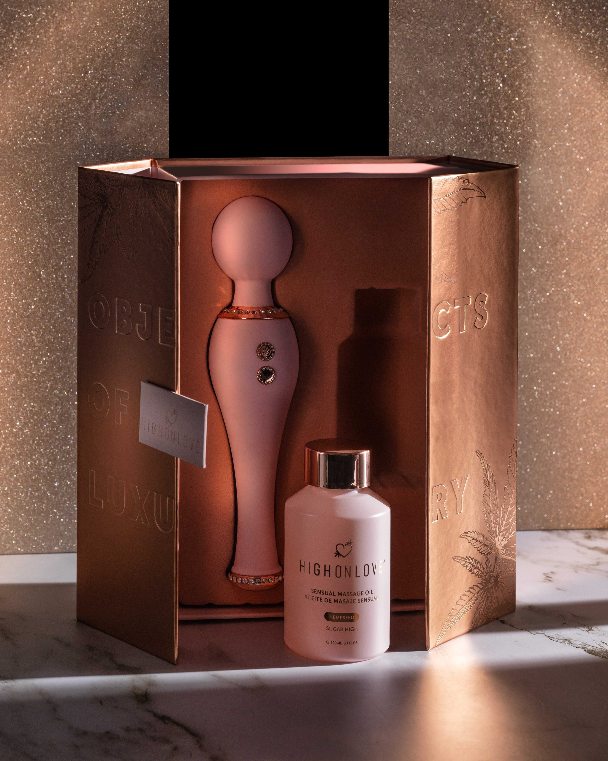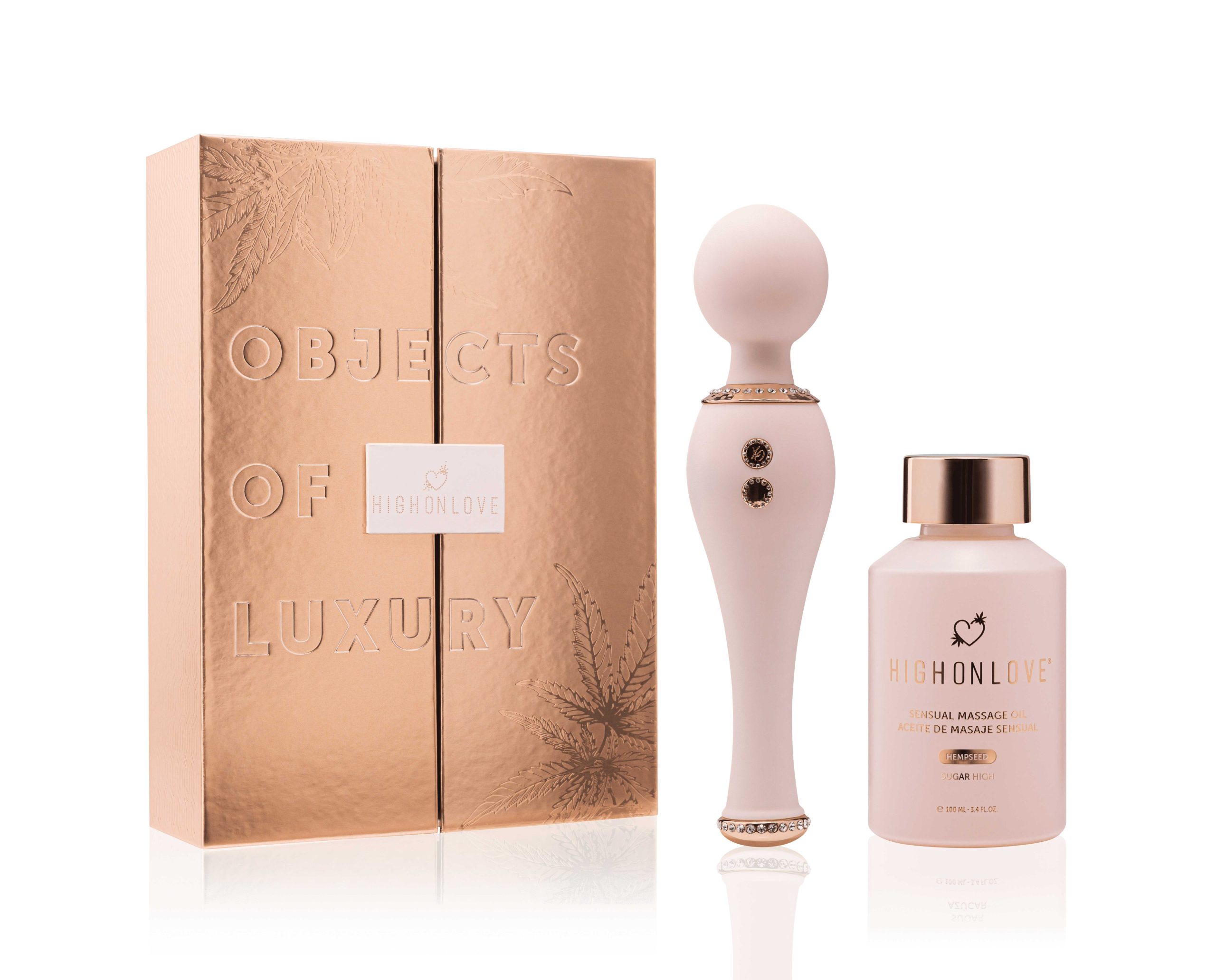 Offrez-vous une expérience de plaisir inégalée avec ce coffret cadeau comprenant l’Huile de Massage Sensuelle HighOnLove la plus vendue et notre vibromasseur en silicone éblouissante de première qualité.À propos de l’Huile de Massage Sensuelle HighOnLove® :Améliorez vos préliminaires avec l’Huile de Massage Sensuelle HighOnLove®. Ce mélange luxueux d’huiles naturelles et d’huile de chanvre de première qualité est le compagnon idéal d’un massage nourrissant pour la peau qui aide à soulager les tensions tout en amenant le corps et l’esprit à un état de bonheur absolu. À propos du vibromasseur :Masseur pour tout le corps avec une puissance extraordinaire5 vitesses de vibration progressivesBouton poussoir facile à utiliser (maintenir 3 secondes pour allumer ou éteindre)Silicone luxueuse avec accents décoratifsPeut être utilisé dans l’eau ou hors de l’eauVerrouillage de sécurité pour le voyageLa puce de mémoire reprend la dernière fonction utiliséeRechargeable par USB – cordon de charge inclus Le vibromasseur Objects of Luxury est-il vendu séparément ?Ce set est une exclusivité HighOnLove®, vous ne trouverez donc pas ce jouet personnalisé ailleurs. Il s’agit d’un modèle en silicone de première qualité conçu spécialement pour nous ! Toutefois, si vous rencontrez des problèmes avec le jouet, nous sommes là pour vous aider à le remplacer. Envoyez-nous un e-mail à info@highonlove.ca et nous vous répondrons dans les plus brefs délais.Can HighOnLove® products be used with condoms and silicone toys?Yes. Both our Stimulating Oil and Stimulating O Gel (water-based) are safe for use with condoms and silicone toys. Condom compatibility has been tested.Do HighOnLove® products contain fragrance?HighOnLove®products contain aromas instead of artificial fragrances. As such, our Sensual Massage Oil, Dark Chocolate Body Paint, Lip Gloss for Couples, Stimulating Oil and Stimulating 0 Gel are all safe to taste.Why are HighOnLove® products made in small batches?Our packaging may be beautiful, but we know that it?s what?s inside that counts. In order to guarantee quality for our customers, we work with premium producers who inspect each batch to ensure proper consistency.