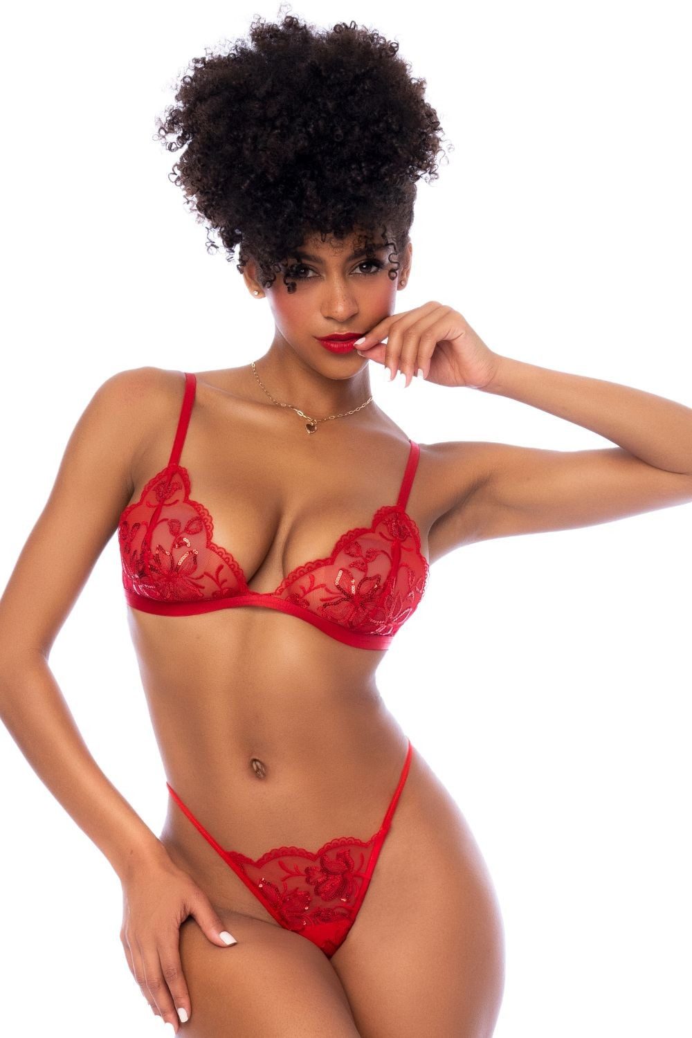 Cette luxueuse maille brodée de paillettes avec des détails floraux dans un rouge vif est tout ce dont vous avez besoin cette saison. Ensemble trois pièces comprenant un soutien-gorge à bretelles réglables, un porte-jarretelles réglable et un string assorti.Composition : Dentelle : 100% Polyester / Elastiques : 78% Polyamide 22% ElastanePrécautions d’utilisations : Laver séparément à la main, pas de sèche linge, pas de produit javelisantBas non inclus