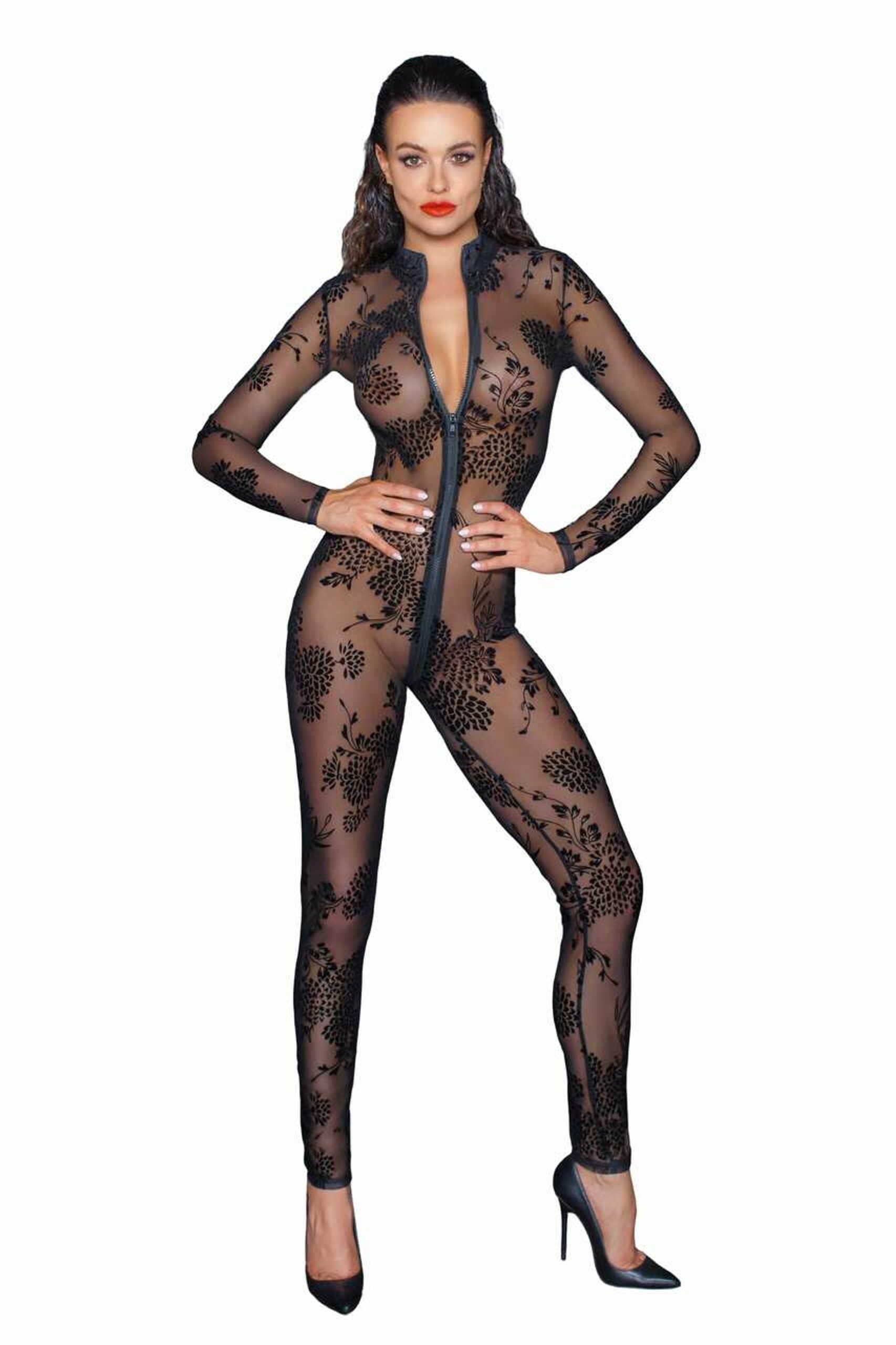Description du produitPowernet élastiqueTransparentFermeture éclairCette longue combinaison sexy en tulle est ornée de broderies floquées et d’une longue fermeture à glissière à trois voies allant du col jusqu’à l’entrejambe. Ce look transparent met en valeur la féminité coquette.