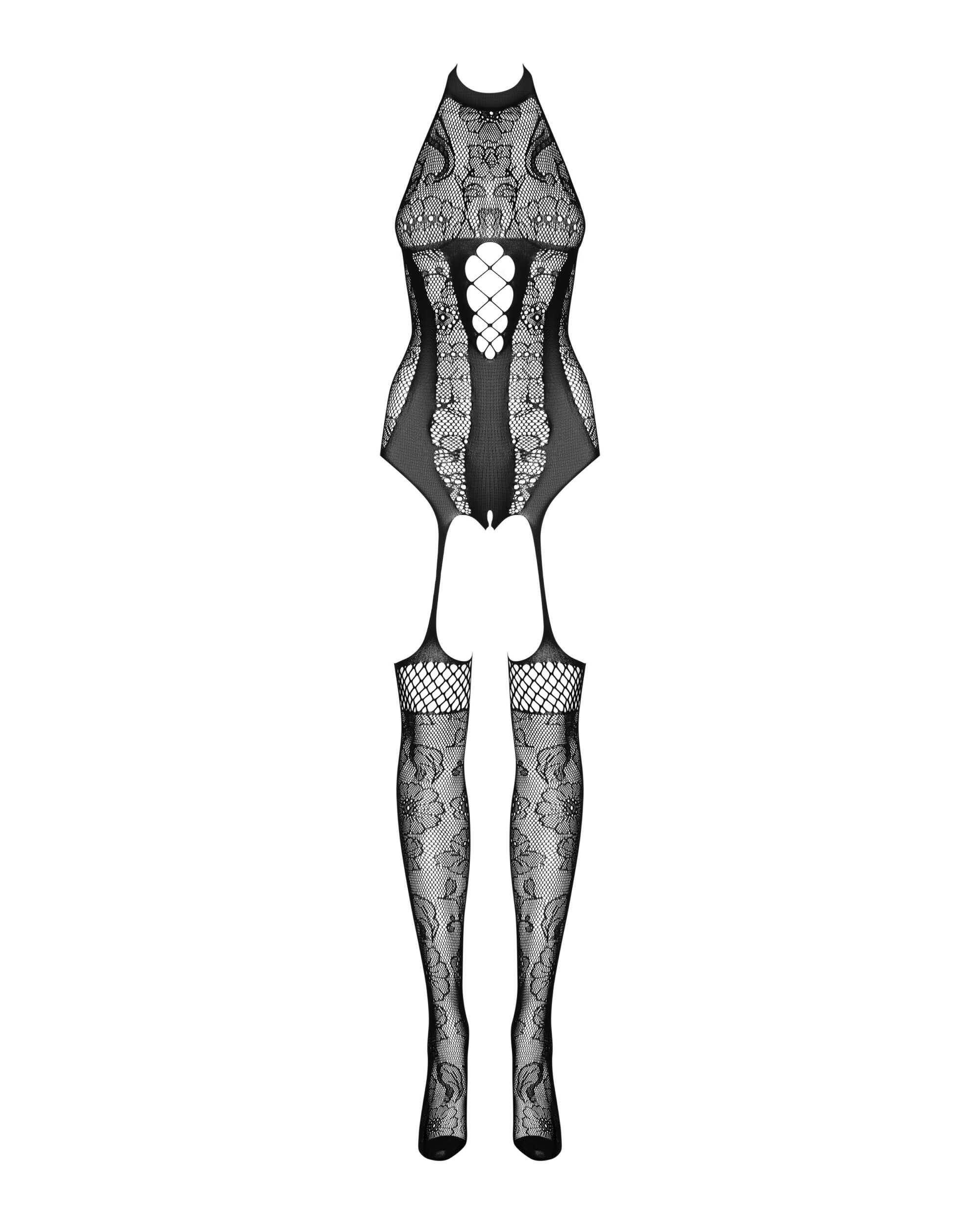 Bodystocking F240  Embrassez votre séductrice intérieure avec ce bodystocking, conçu à partir d?un tissu souple qui promet une coupe parfaite. Richement orné de motifs floreaux entrelacés avec des mailles, son design captivant vous assure que tous les yeux sont sur vous. Conçu pour faire tourner les têtes. Parfait pour ceux qui aiment se démarquer. – bodystocking noir- découpe de dos – conception ouverte- motifs floreaux avec maille – Tissu souple et flexible- 90% nylon, 10% élasthanne- conçu dans l?UE