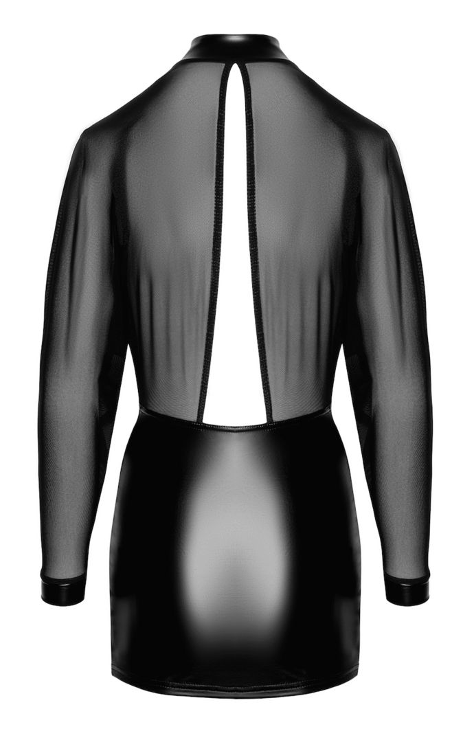 Description du produitWetlook élastiquePowernet élastiqueBoutonsMini robeDos nuTransparent Cet ensemble captivant associe l’élégance de la maille transparente à l’audace du tissu Stretchy Power Wetlook, créant un look à la fois audacieux et sophistiqué. Parfaite pour celles qui aiment se faire remarquer, cette tenue est conçue pour faire tourner les têtes et laisser une impression durable.Matériau:Top: Le top est fabriqué dans une maille transparente et élastique qui offre une sensation de douceur et d’aération. Les manches longues et le col montant ajoutent une touche de sophistication, tandis que l’ouverture sur le devant et dans le dos donne de l’audace.Jupe: La mini-jupe ajustée est fabriquée en tissu Stretchy Power Wetlook, offrant une silhouette élégante et ajustée qui contraste magnifiquement avec le haut volumineux en maille.Design: Le haut en maille est doté d’un col et de poignets à boutons-pression réalisés dans le même tissu Wetlook que la jupe, ce qui permet de relier les deux éléments. Le dos ouvert et le devant plongeant ajoutent une touche d’audace à l’élégance du modèle, le rendant parfait pour les sorties audacieuses comme pour les moments intimes.Coupe: La jupe est taillée pour s’asseoir sur la taille, accentuant la silhouette, tandis que le haut se drape librement pour un contraste saisissant entre les formes.Idéale pour les événements spéciaux, les fêtes ou lorsque vous souhaitez faire une entrée remarquée, cette tenue est parfaite pour celles qui apprécient un mélange d’élégance et d’audace. C’est une pièce polyvalente qui peut être stylisée de différentes manières, selon l’occasion, offrant des possibilités infinies pour créer des looks inoubliables. Matière :76% poliester 24 % elasthane enduit de polimère ; dentelle : 85 % poliamide 15 % elasthane