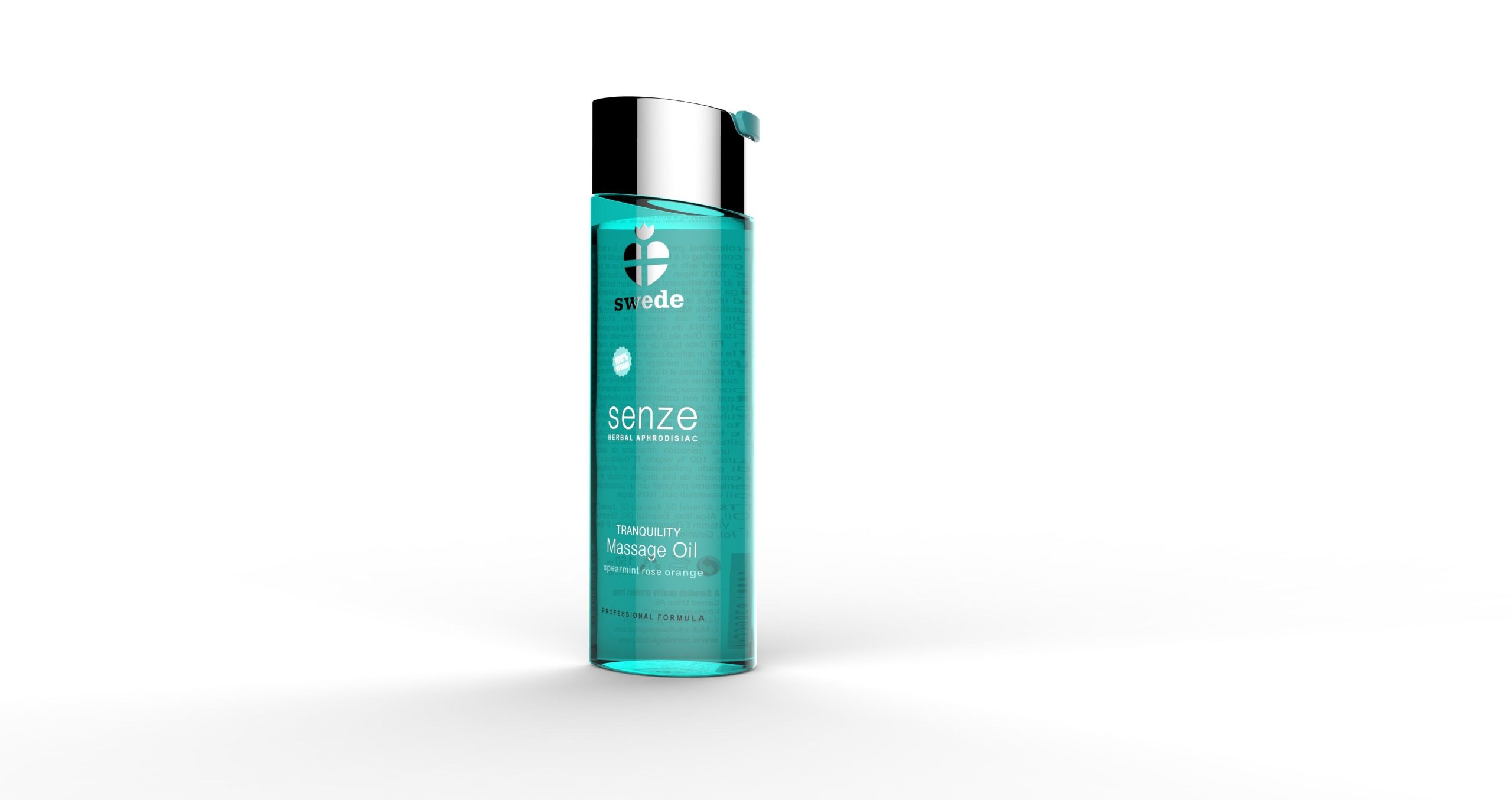 Découvrez de nouvelles sensations avec la gamme d’huiles de massage de qualité professionnelle Senze Herbal Aphrodisiac de Swede !L?huile de massage SENZE est un cocktail de bienfaits :L?Huile d?amande douce hydratante et protectriceL?Huile d?avocat nourrissante et restructuranteL?Huile de macadamia régénérante et cicatrisanteL?Huile de noisette : réparatrice et anti-oxydanteL?Huile de graine de chanvre : riche en oméga 3 e 6Et enfin l?Aloe Vera qui agira sur l?élasticité de la peau.Un mélange raffiné d’huiles essentielles et d’extraits naturels pour un pur moment de détente. C’est ce que vous propose la marque Swede avec son huile de massage Tranquility aux huiles de Menthe Verte calmante, Rose aphrodisiaque et Orange Douce apaisanteCette huile de massage est 100% Vegan et naturelle.Non comestible, usage externe uniquement.