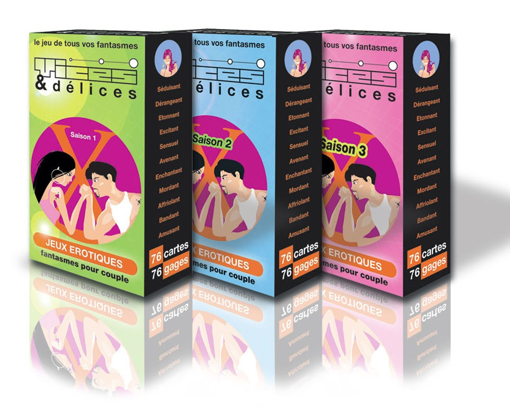 Jeu de cartes Vices et Délices Saison 3 – Jeu coquin alliant désir et fantasme. Pimentez votre relation et osez satisfaire vos envies les plus profondes avec Les Jeux Vices et Délices…un jeu érotique de cartes qui vous propose 76 gages pour éveiller vos désirs les plus secrets et vous met au défi de les réaliser. 3 niveaux de difficulté…Facile cartes de couleur verte …Entreprenant cartes bleu …Torride et libertin cartes orange. Pas de perdants ! le but de ce jeu est de se confronter, à deux ou à plusieurs, à des épreuves toutes plus imaginatives et coquines les unes que les autres. A vous ensuite d’imaginer vos propres défis et d?inventer vos propres gages?Jeu de 80 cartes, dont 76 gages érotiques à réaliser seul ou en couple pour des moments de plaisirs.3 règles du jeu différentes pour faire varier les plaisirs.3 degrés de difficultés :Carte de couleur verte : facile saison 1Carte de couleur bleu : gage plus entreprenant saison 2Carte de couleur orange : joueur très avertis saison 3Séduisant – Dérangeant – Étonnant – Excitant – Sensuel – Avenant – Enchantant – Mordant – Affriolant – Bandant – Amusant80 cartes 76 gages