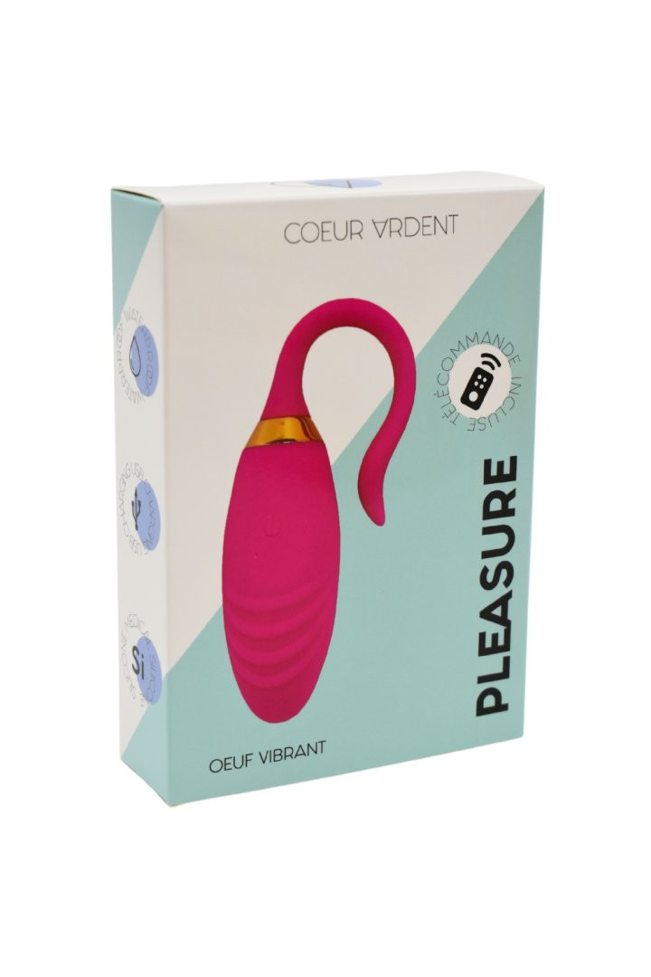 PLEASURE, un ?uf vibrant Rainuré Rose pour des sensations plus intenses. ?uf avec télécommandé à distance. un ?uf vibrant dont vous pourrez contrôler les puissantes vibrations, 10 modes de vibration et 3 vitesses variables, à l’aide de sa télécommande sans fil !. Un moteur puissant qui réveillera tous vos sens. Dans un silicone rainuré et doux . Utilisez la télécommande pour changer les modes de vibration et la vitesse – Avec une interface Marche/Arrêt pour l’allumer et changer les modes de vibration et et – Pour augmenter ou diminuer sa vitesse…de Doux à très intense.Waterproof Silencieux avec moins de 45dB max.Dimensions : 100 x 75 mm tout compris Temps de charge 60 minutes pour 90 minutes de jeu – Charge USB câble fourni Télécommande avec pile plate fournie.Matières: Silicone et ABS – sans phtalates Poids 105 Gr –