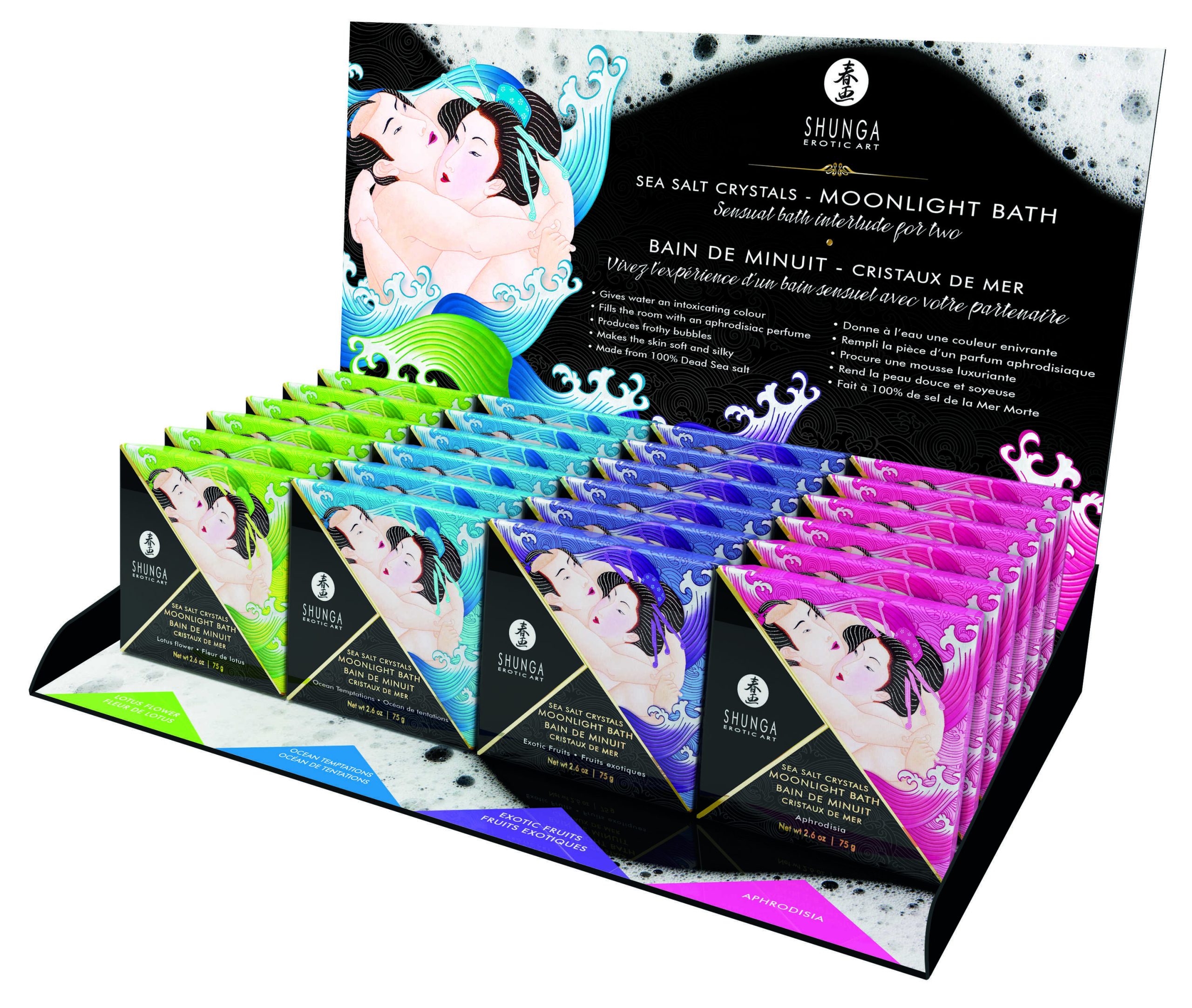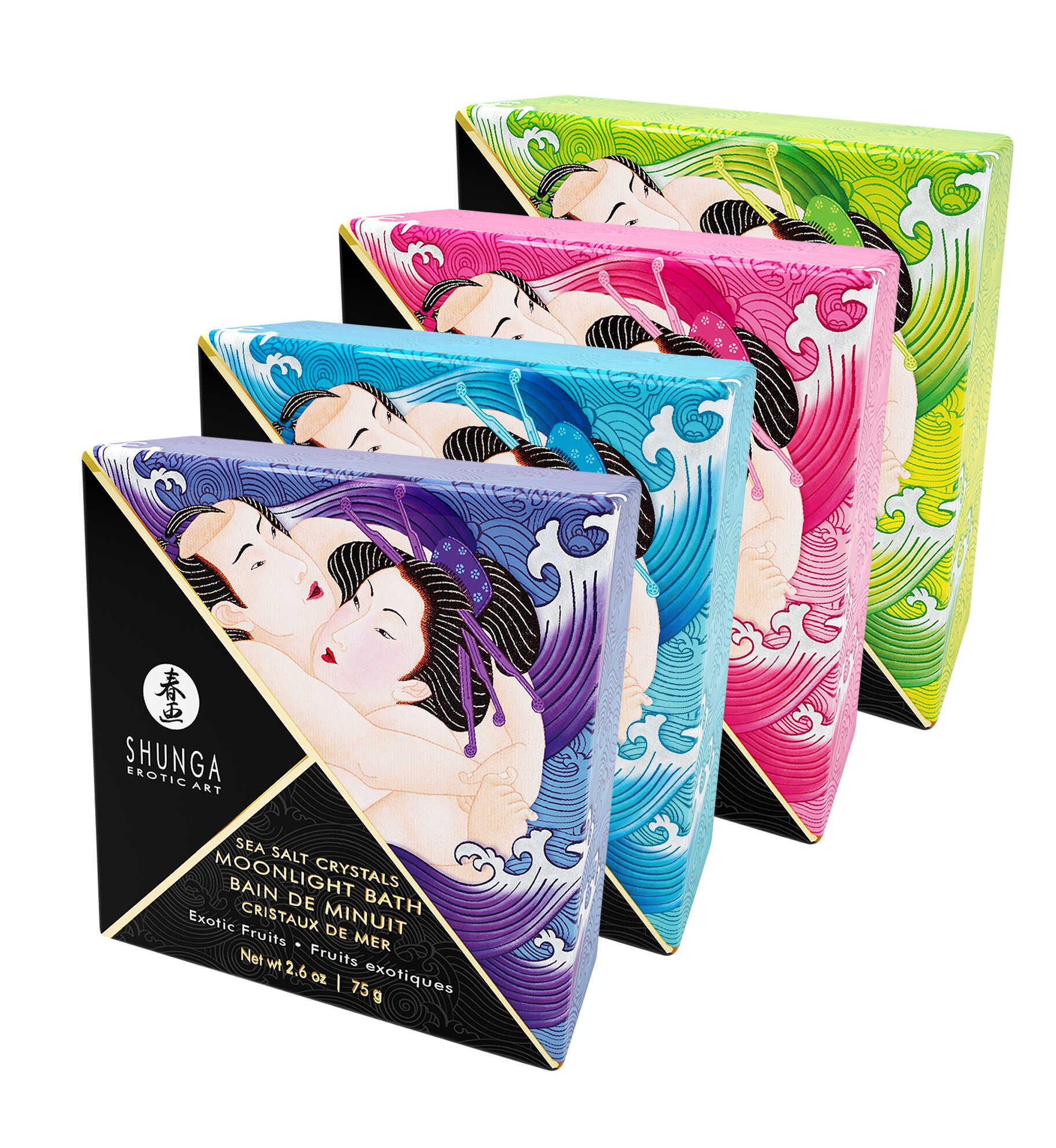 Sel de mer? Boîte à usage unique ? Fait à 100% de sel de la Mer Morte ? Procure une mousse onctueuse ? Donne à l?eau une couleur enivrante ? Parfume le corps et la pièce Les cristaux de Sel de la Mer Morte intensifieront votre rituel du bain en colorant délicatement l?eau et en vous enveloppant de sa mousse veloutée. Le parfum aromatique apportera la mer et son effet apaisant dans votre bain.Une expérience ressourçante vous attend, en solo ou avec votre partenaire, pour créer des moments sensuels de détente ou de bonheur intense ?Les cristaux de mer, à usage unique, sont emballés dans une petite boîte de 75 gr.Disponible en 4 parfums, le bain de Minuit est également fait de sels de la mer Morte, qui rehausse chaque expérience de bain. Chaque cristaux ont leur propre couleur unique et ne laisse aucun cerne autour de la baignoire.Créant une oasis de détente, il parfume légèrement le corps et la salle de bain et procure des bulles onctueuses.Ingredients (I.N.C.I.): Dead Sea Salts/Sels de la Mer Morte (Sodium chloride), Sodium Lauryl Sulfate, Sodium DodecylBenzeneSulfonate, Sodium Sulfate, Fragrance (Parfum), Calcium Silicate, Glycerin/Glycérine, Safflower Oil/Huile de carthame (Carthamus tinctorius seed oil), Almond Oil/Huile d?amande (Prunus amygdalus dulcis oil)