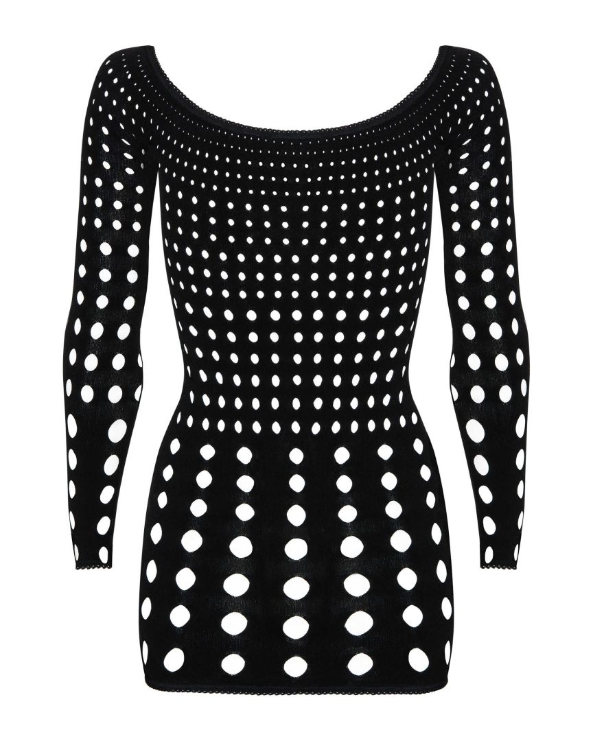 Cette robe ultra sexy est conçue dans une matière douce et élastique. Ajourée, elle expose le cou et les épaules. Ses manches longues et ouvertures dans le tissu vous donneront un look rock.Composition : 90% nylon, 10% élasthanne