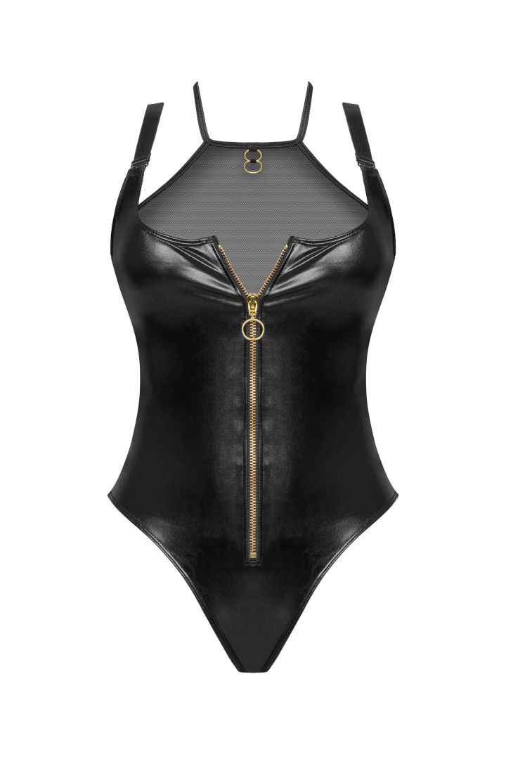 Le body « Roxana » combine du tulle et des matières de type latex pour un look sensuel et une coupe parfaite. Grâce à la fermeture crochetée à l?entrejambe, le body peut également être porté comme top pour les tenues de fête. Les accents dorés sous forme de fermeture éclair et d?anneaux au cou ajoutent élégance et luxe. Un choix idéal pour les sorties en soirée et les rencontres romantiques.L?ensemble est livré dans un élégant emballage avec une photo représentant le produit.Taille : S/M et L/XLTaille S/M : (Poitrine : 81-91 cm, B-C, Taille : 56-71 cm, Hanche : 85-97 cm)Taille L/XL : (Poitrine : 91-107 cm, C-D, Taille : 71-91 cm, Hanche : 97-112 cm)Matière : 88 % polyester, 12 % élasthanne