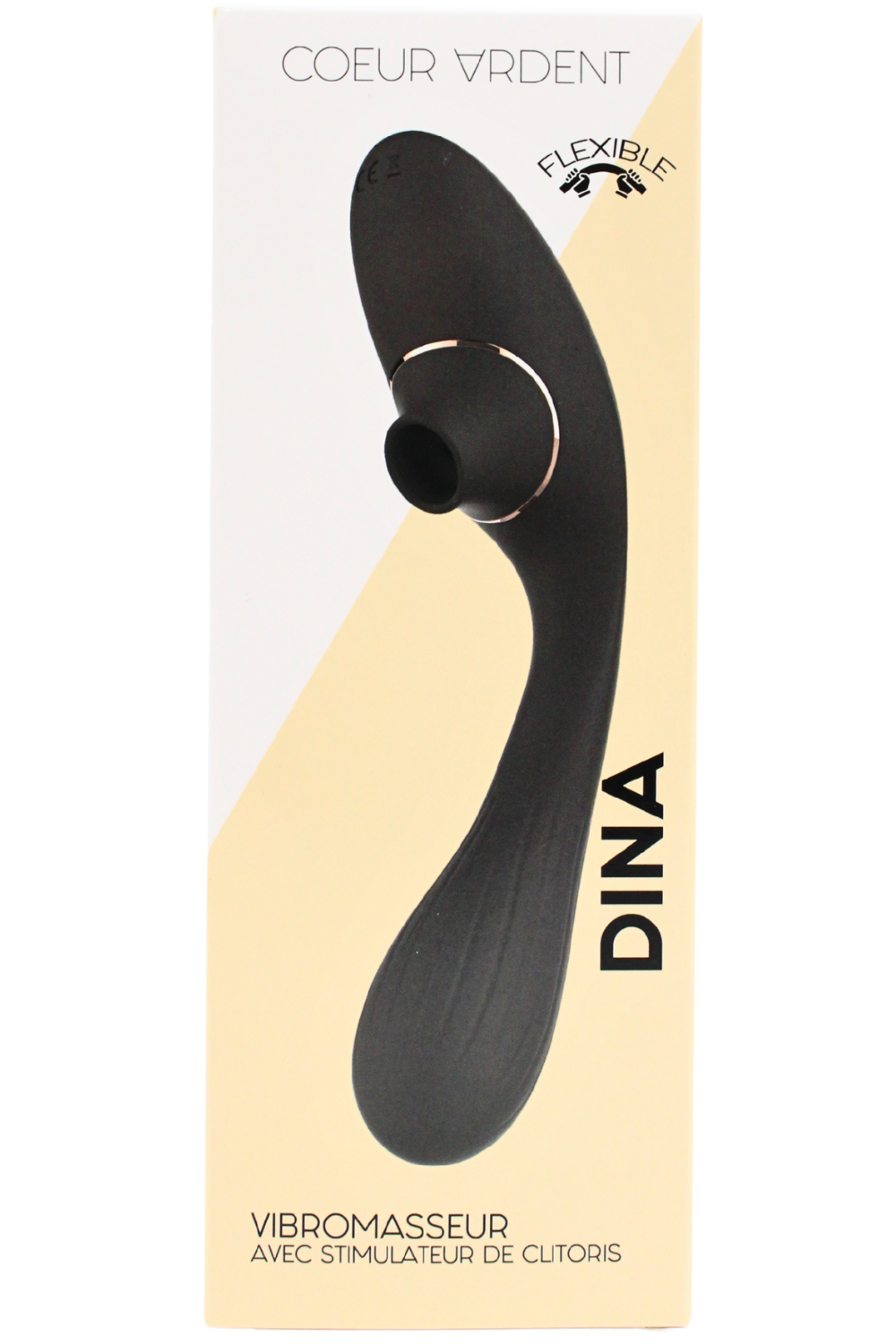 Le DINA 2-en-1 de la marque C?ur Ardent associe deux plaisirs intenses dans un sextoy haut de gamme : une stimulation clitoridienne innovante par membrane vibrante et un vibromasseur ergonomique pour le point G.Ses atouts :Double moteur puissant : un moteur dédié au clitoris, l?autre au point G10 modes de vibrations pour chaque zone ? intensité et variété garantiesStimulation clitoridienne par membrane vibrante : sensations uniques, ciblées et amplifiéesDesign flexible pour s?adapter à toutes les morphologiesRechargeable par USB câble inclus ? pratique et écologiqueWaterproof  ? idéal sous la douche ou dans le bainLivré avec pochette de rangement éléganteAvec sa forme ergonomique, sa couleur noire élégante et sa double technologie de stimulation, le DINA est conçu pour offrir des orgasmes puissants, aussi bien en solo qu?en couple.Dimensions : longueur dépliée 22,4 cm ? diamètre 2 à 3,4 cm?? Nettoyer avant et après chaque utilisation avec un nettoyant sextoys ou de l?eau tiède savonneuse.Matières : Silicone et ABS