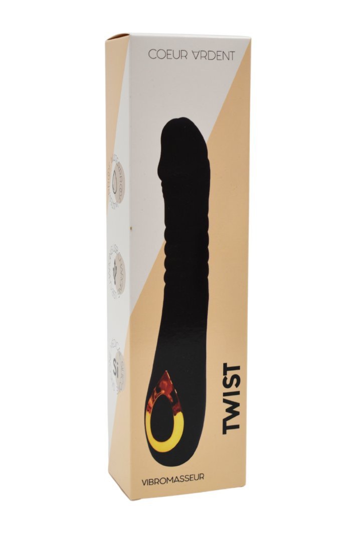 TWIST ,un vibromasseur Va-et-Vient Noir, en silicone avec 18 modes de stimulation pour des moments intenses qui réveilleront tous vos sens.Réalisez un appui long sur le bouton power pour allumer et éteindre votre sex-toy. Puis, appuyez sur le bouton du haut pour changer le mode de vibration. Waterproof Silencieux avec moins de 45dB max.Dimensions : 240 x 65 mm tout comprisTemps de charge 60 minutes pour 90 minutes de jeu – Chargement magnétique avec câble de chargement USB Matières: Silicone et ABS – sans phtalates Poids 279 Gr —