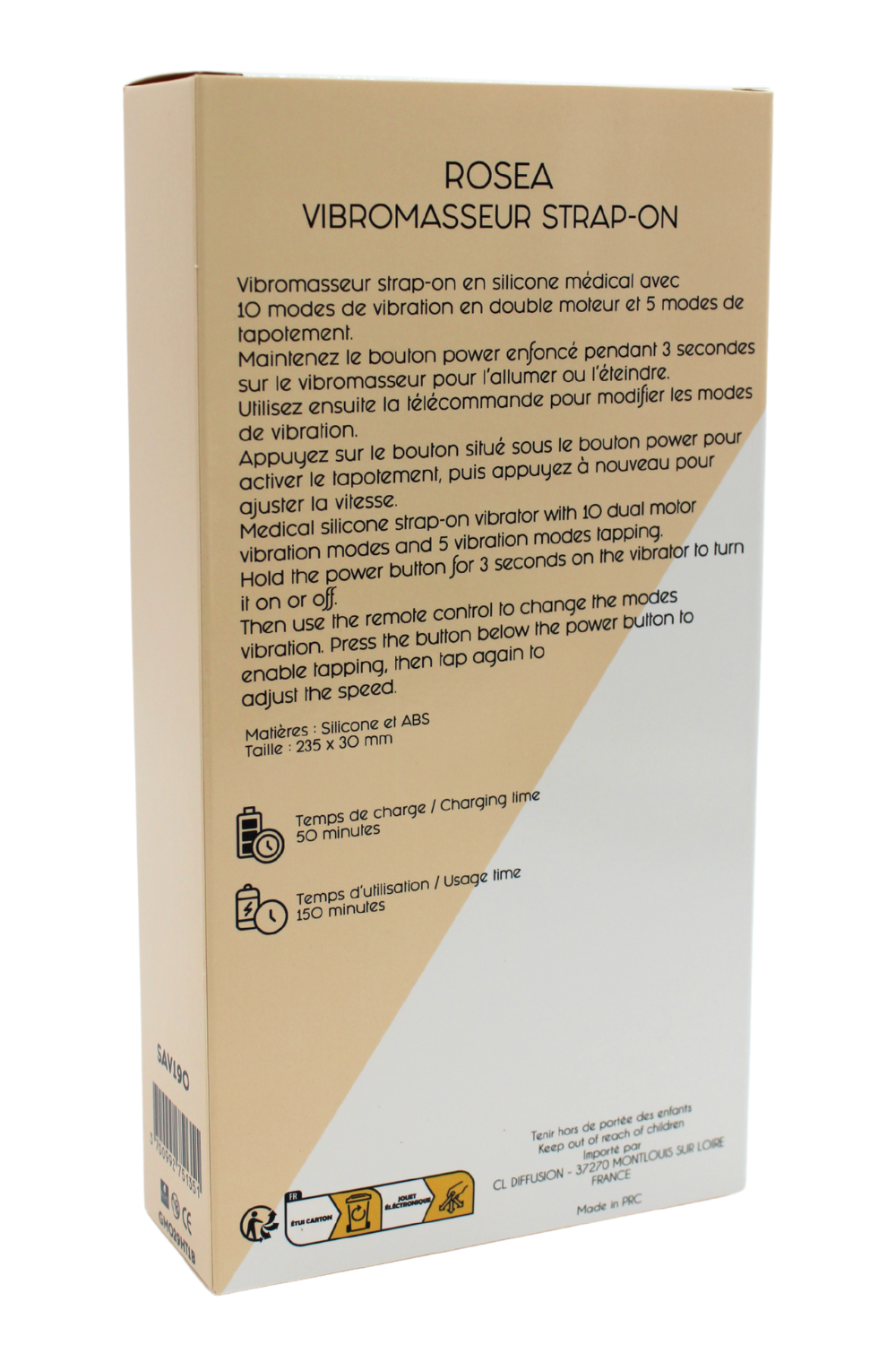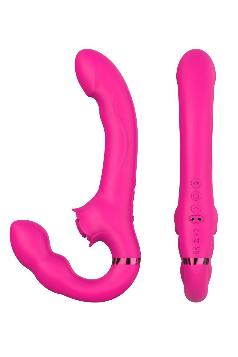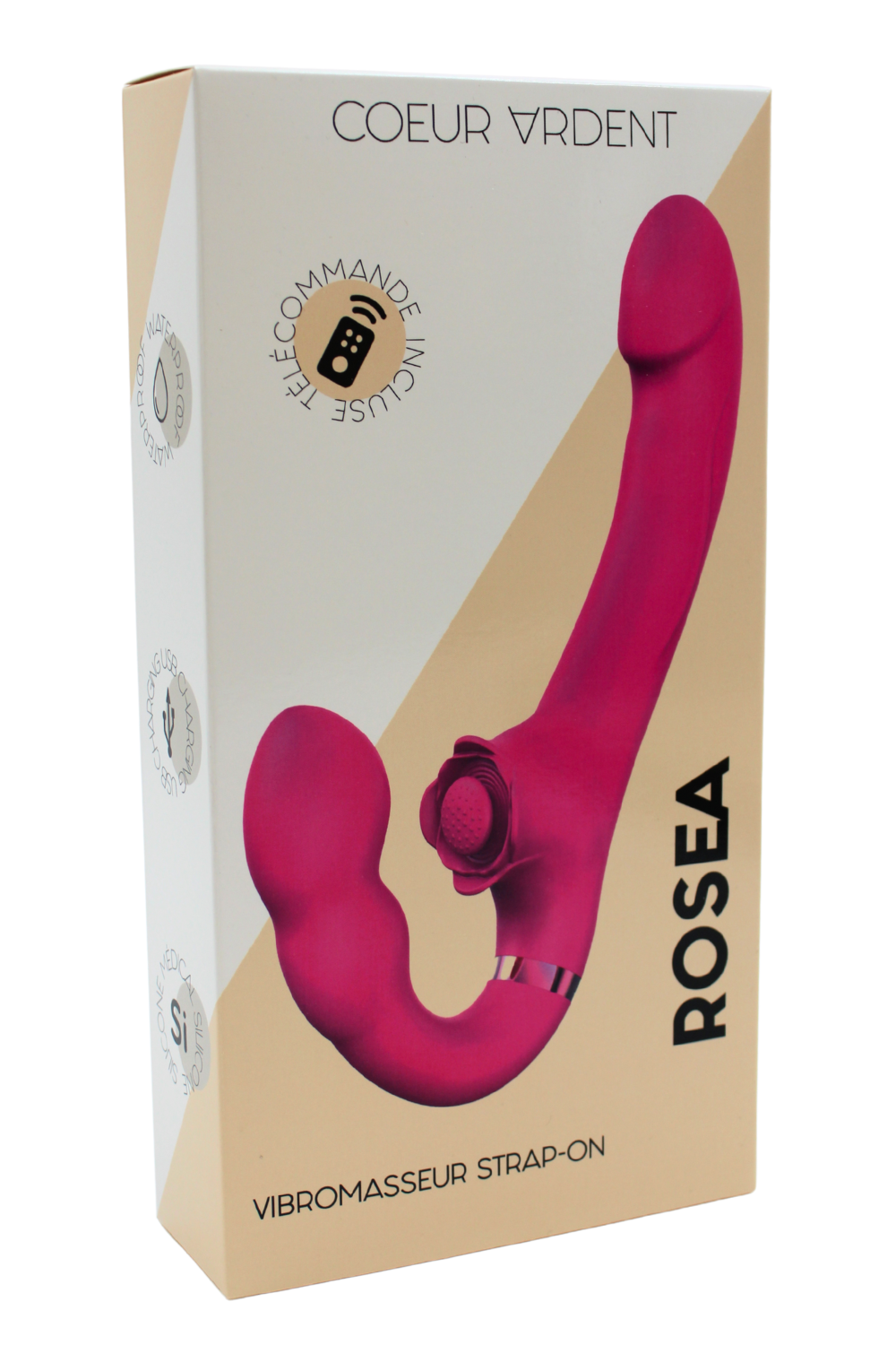 Découvrez ROSEA, le vibromasseur strap-on à triple stimulation conçu pour une expérience inégalée en duo comme en solo. Grâce à ses 3 moteurs puissants tête, queue et point de tapotement, il propose 10 modes de vibration et 5 modes de tapotement, pour des sensations intenses et variées.Son design incurvé et ergonomique s?adapte parfaitement à l?anatomie pour une stimulation vaginale, anale et clitoridienne simultanée. Le contrôle est simple et intuitif, directement sur le sextoy ou via sa télécommande sans fil, idéale pour les jeux à deux.Fonctionnement :Bouton Power milieu : Maintenir 2s pour allumer/éteindreBouton vibration haut : Cliquer pour changer les 10 modes / Maintenir pour arrêterBouton tapotement bas : Cliquer pour changer les 5 modes / Maintenir pour arrêterTélécommande incluse : contrôle total à distance pour plus de liberté et de fun !Recharge magnétique ? 150 min de charge pour 50 min d?autonomiePoids : 243 gWaterproof et hygiénique ? en silicone médical doux